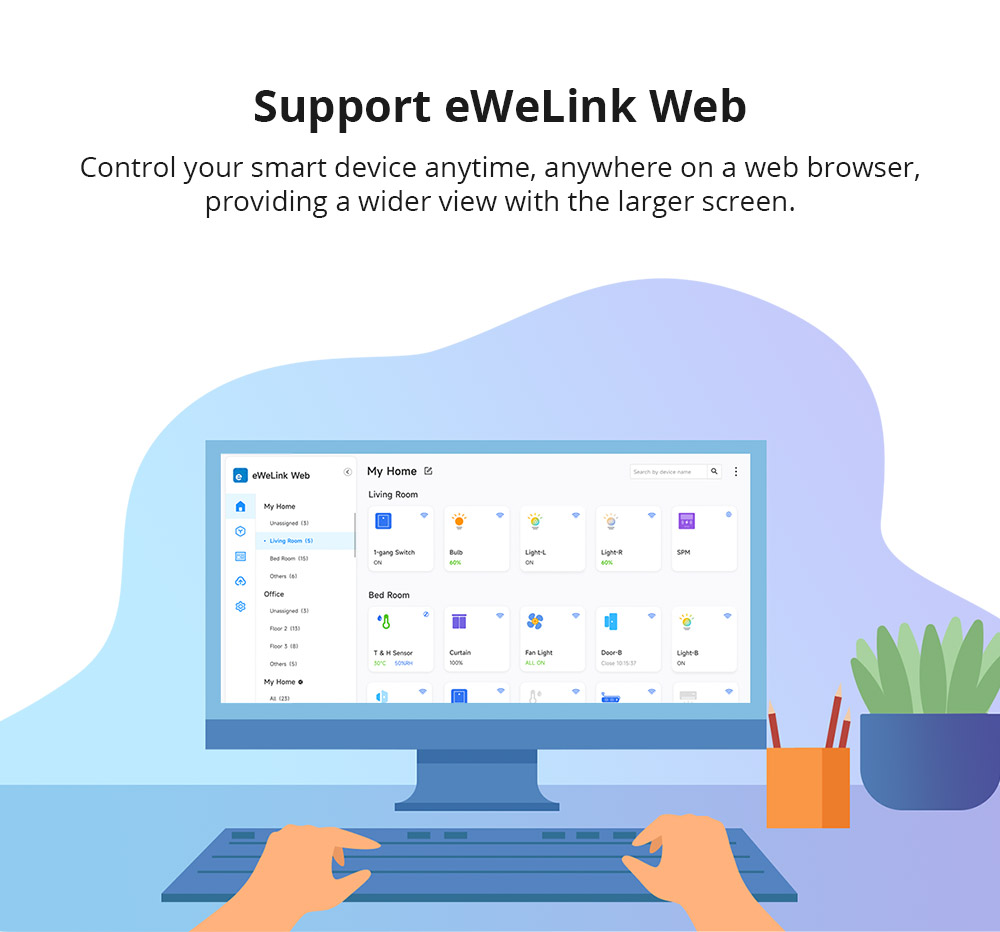 【eWeLink Web】No need to download or install. Just log in to your eWeLink account on a web browser. You can control your smart devices anytime, anywhere, wide view with larger screens.